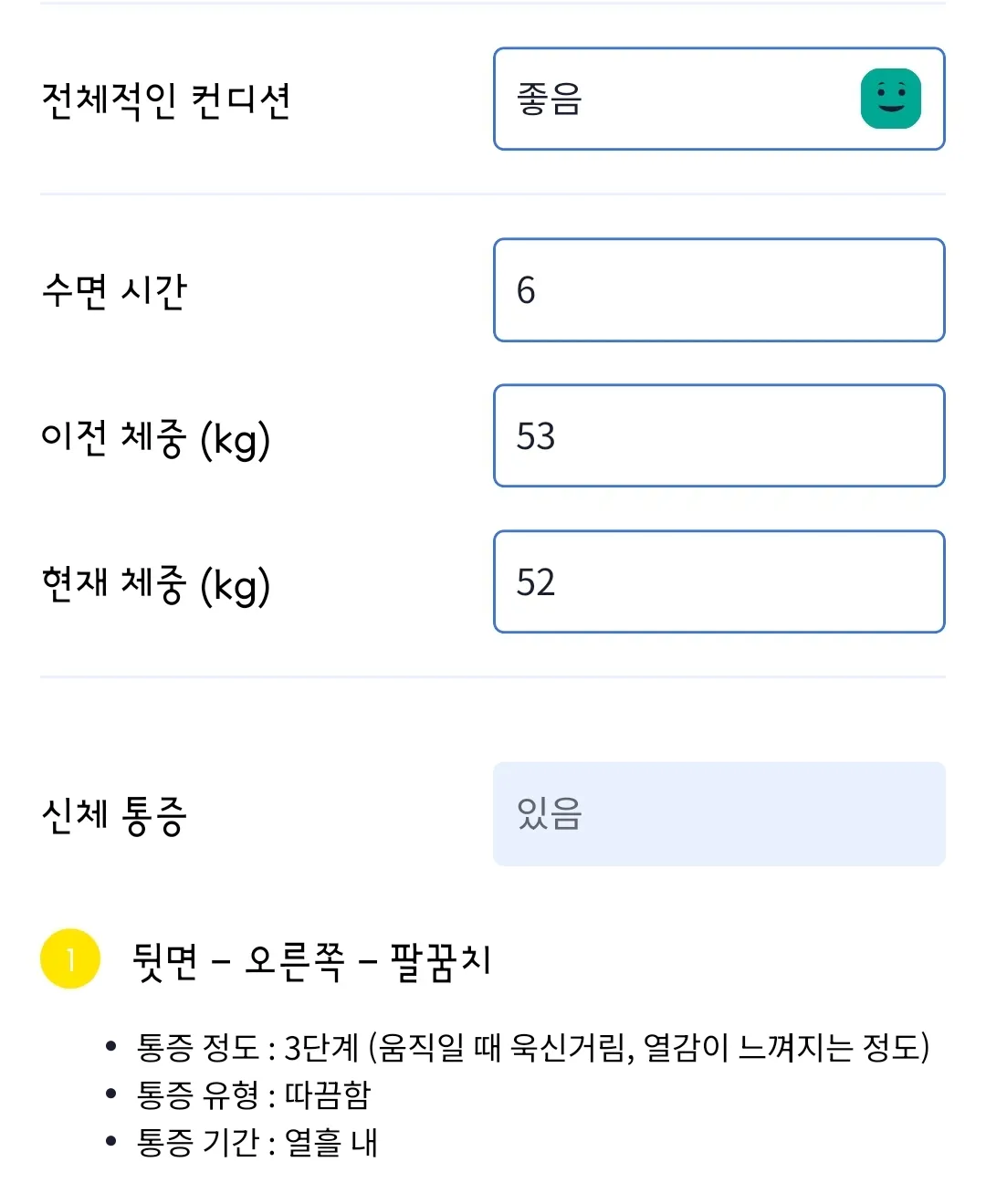 말로 하기 어려운 부분들도 체크할 수 있습니다.